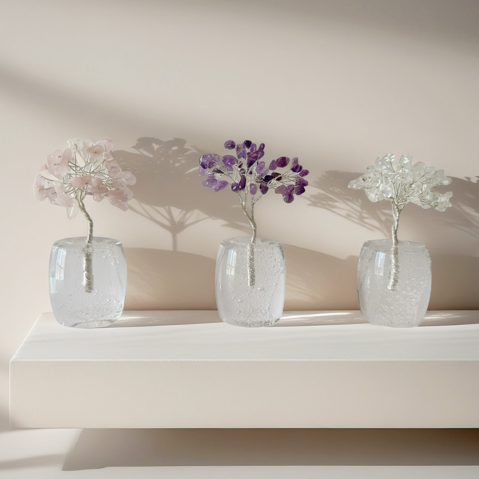 Crafted to resemble natural bonsai trees, each crystal tree brings a breath of life into your space. Create your own exclusive crystal forest, rooted in intention and blooming with healing.